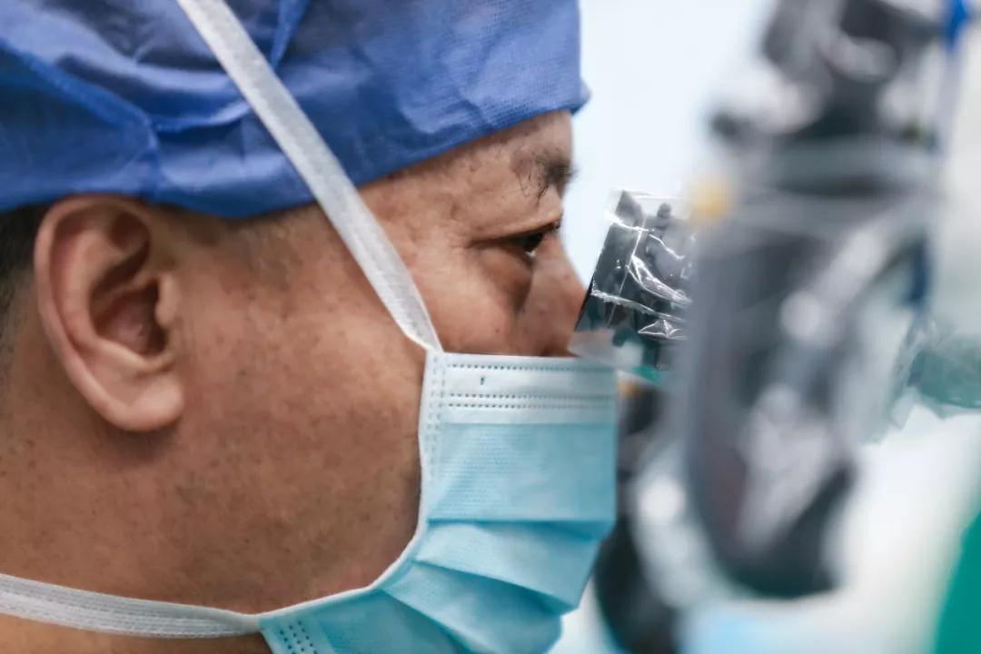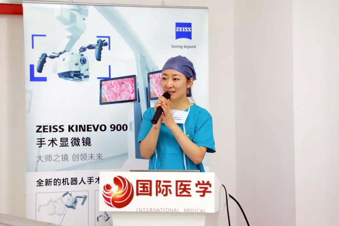 隨后,腦科醫(yī)院名譽(yù)院長高國棟使用機(jī)器人手術(shù)顯微鏡(ZEISS KINEVO 900),為一位41歲原發(fā)性面肌抽搐的男性患者行左側(cè)面神經(jīng)微血管減壓術(shù)。術(shù)后,患者情況穩(wěn)定。