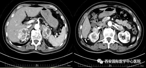 今年七十五歲的患者,來自陜西省商洛市,四月前因腰背部疼痛就診于當?shù)蒯t(yī)院,行CT檢查發(fā)現(xiàn)“右腎、雙側(cè)腎上腺占位,前縱膈淋巴結腫大,雙肺多發(fā)結節(jié)、胸椎骨質(zhì)破壞,考慮轉(zhuǎn)移瘤”。為進一步診斷治療,患者的兒子帶他來到西安某三甲醫(yī)院,查泌尿系CT提示“右腎占位性病變,多考慮腎癌,雙側(cè)腎上腺多發(fā)轉(zhuǎn)移灶,腹膜后多發(fā)腫大淋巴結”;行穿刺活檢提示“腎透明細胞癌”;并給予患者口服靶向藥物的治療方案。