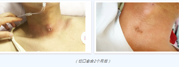 患者妻子含淚回顧了當(dāng)時的情況,“當(dāng)他被推進(jìn)重癥醫(yī)學(xué)科的那一刻,我的心如撕裂般的疼痛,家人們也早已泣不成聲,我們面對的是一個陌生的地方,不知道里面正在發(fā)生著什么,對突如其來的意外更是無所適從。尤其是醫(yī)生說需要做氣管切開時,一想到要在他脖子上開一道口子我們就心痛,擔(dān)心會影響他說話;擔(dān)心傷口長不上;擔(dān)心他將來留個疤,甚至懷疑做了氣管切開就是沒救了?,F(xiàn)在看來,我們的擔(dān)心是多余的。現(xiàn)在脖子上的傷口不僅很小而且很美觀,不仔細(xì)看根本看不出來。”