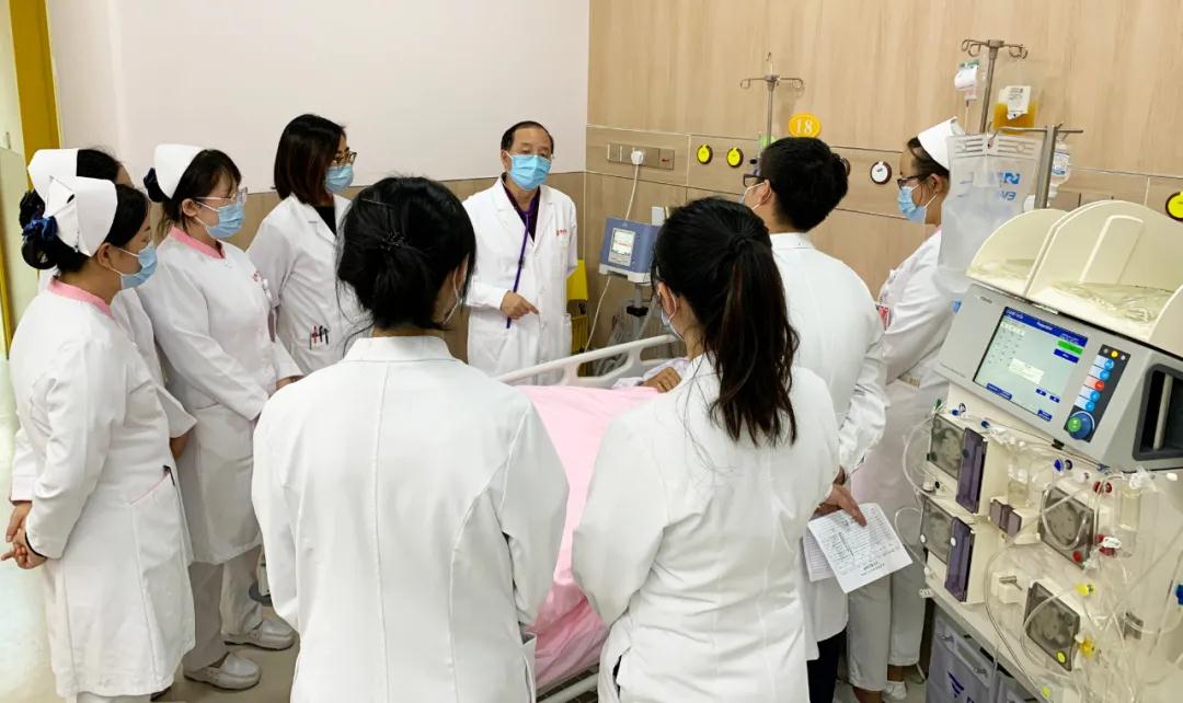 孔先生已經出現(xiàn)休克、少尿、消化道出血的癥狀,并伴有胰腺炎。危急時刻容不得半點遲疑,賈戰(zhàn)生主任立即率領李曉主治醫(yī)師、盧敏護士長、荊虹住院醫(yī)師等醫(yī)護團隊展開72小時救治。制定個性化治療方案,觀察病情并調整治療,隨時進行各項護理……