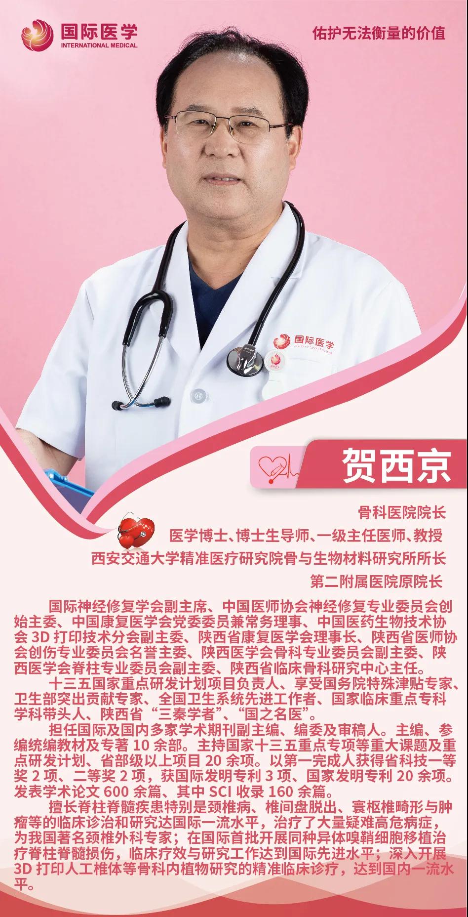 近年來,賀西京院長深入開展 3D 打印人工椎體等骨科內(nèi)植物研究的精準(zhǔn)臨床診療,創(chuàng)建國內(nèi)一流水平的手術(shù)方法及規(guī)程。賀西京教授的團(tuán)隊(duì)在國際上創(chuàng)新性地提出了椎體次全切術(shù)后“可動人工椎體——椎間盤復(fù)合體”植入、重建頸椎運(yùn)動單位功能的理念,研制出“可動人工頸椎假體”和人工寰齒關(guān)節(jié),同時,還應(yīng)用嗅鞘細(xì)胞移植治療脊髓損傷,并在多家三甲醫(yī)院進(jìn)行推廣應(yīng)用。