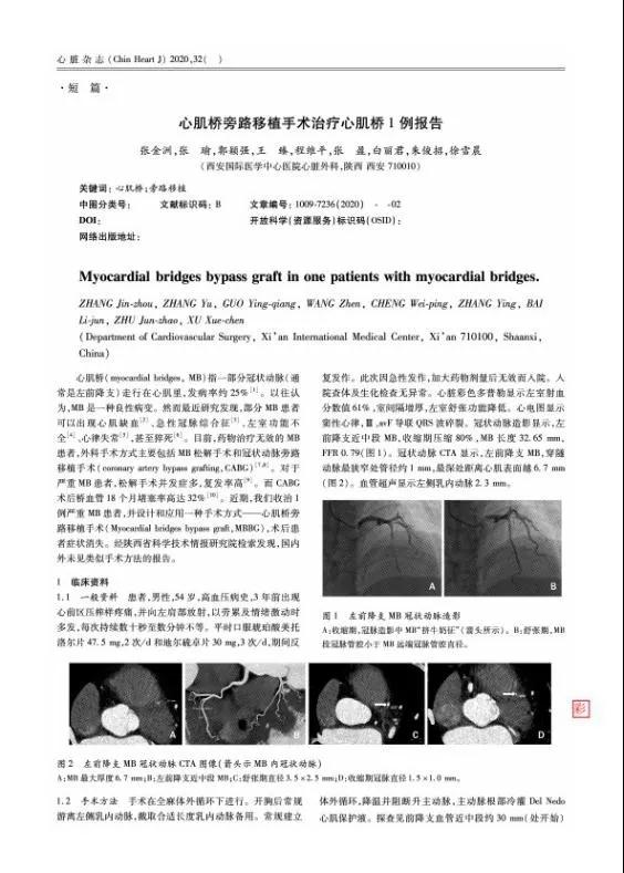 近日,西安國(guó)際醫(yī)學(xué)中心醫(yī)院心臟病醫(yī)院副院長(zhǎng)張金洲教授等撰寫的“Myocardial bridge Bypass Graft: a Novel Surgical Procedure for Extensive Myocardial Bridges”(心肌橋旁路移植手術(shù):治療廣泛心肌橋的一種新的外科術(shù)式)被心胸外科領(lǐng)域的頂級(jí)期刊Ann Thorac Surg接受,代表西安國(guó)際醫(yī)學(xué)中心醫(yī)院心臟外科首創(chuàng)的這一術(shù)式得到國(guó)際同行的認(rèn)可。2020年4月,張金洲教授首次應(yīng)用這一術(shù)式治療一例難治性廣泛心肌橋病人,取得滿意的療效。隨后,心血管領(lǐng)域國(guó)內(nèi)權(quán)威期刊《心臟雜志》以快速通道的方式報(bào)道了這一術(shù)式,引起國(guó)內(nèi)同行和患者的關(guān)注。至此,我院心臟外科首創(chuàng)技術(shù)獲得國(guó)內(nèi)外同行的認(rèn)可。