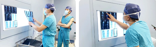 這位患者楊某,平日無任何不適癥狀,有高血壓病史7年。近日突感胸背部疼痛,加重4小時(shí),呈持續(xù)性撕裂樣痛。當(dāng)?shù)蒯t(yī)院的胸部CT提示:主動脈增寬,考慮主動脈夾層,建議緊急轉(zhuǎn)往上級醫(yī)院治療。家人連夜把患者送到西安國際醫(yī)學(xué)中心醫(yī)院進(jìn)一步治療。經(jīng)急診核酸檢測后,楊某于12日凌晨3點(diǎn)走“主動脈夾層綠色通道”,住進(jìn)心臟外科ICU。進(jìn)一步檢查發(fā)現(xiàn),該患者有:主動脈夾層(DebakeyI型)、動脈夾層撕裂到左側(cè)髂總動脈,主動脈瓣返流(中量)、雙側(cè)胸腔及心包腔積液??紤]到主動脈隨時(shí)有破裂的風(fēng)險(xiǎn),他們當(dāng)機(jī)決定為楊某急診手術(shù)。手術(shù)于13日早上8點(diǎn)30分開始,張金洲及其團(tuán)隊(duì)先行主動脈根部重建,再用術(shù)中支架修復(fù)降主動脈,然后用四分支血管替換破裂的升主動脈及主動脈弓,最后吻合主動脈弓上分支血管。手術(shù)節(jié)奏流暢,團(tuán)隊(duì)配合默契,歷經(jīng)7個(gè)小時(shí)手術(shù)順利完成。