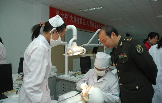談到這點(diǎn),倪龍興笑稱是因?yàn)椤胺涓C爐”。當(dāng)年被第四軍醫(yī)大學(xué)軍醫(yī)系錄取后,學(xué)校派往上海統(tǒng)一接受錄取考生的隊(duì)長(zhǎng)和指導(dǎo)員,在離開上海前一天受同事委托,要買幾個(gè)蜂窩爐回西安。倪龍興家住浦東,要到浦西的集合點(diǎn),需要提前一天到,看到他們攜帶六七個(gè)蜂窩爐及其他隨行物品,不由分說幫著搬運(yùn)行李,農(nóng)村孩子特有的樸實(shí)給他們留下了深刻的印象。在開往西安的火車上,隊(duì)長(zhǎng)和指導(dǎo)員找到倪龍興,告訴他口腔系有一位錄取考生沒有來報(bào)到,問他愿不愿意加入口腔系。“那時(shí)候?qū)I(yè)沒什么概念,都是當(dāng)兵唄,學(xué)什么都行?!比胄2痪茫啐埮d就發(fā)現(xiàn)口腔系的“慘淡待遇”:“你們口腔???有什么難學(xué)的,一口牙就二三十顆,一天學(xué)一顆一個(gè)月就搞定了!”倪龍興經(jīng)常會(huì)被其它系的學(xué)員調(diào)侃?!跋敕瘩g吧,還不知道說什么。因?yàn)槁犞孟褚簿褪悄敲椿厥?。”口腔不受重視是倪龍興當(dāng)時(shí)的感覺。
