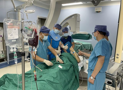 在明確診斷后,韓院長帶領(lǐng)科室團隊為黨叔制定了全面的診療計劃,并第一時間為其安排經(jīng)頸內(nèi)靜脈肝內(nèi)門腔靜脈分流術(shù)(TIPS),從而解決出血問題。手術(shù)順利完成,黨叔生命體征平穩(wěn),還說要喝可樂。