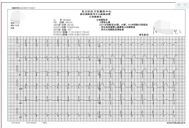 56歲的陳先生,因胸部燒灼感,胸部不適到東大社區(qū)衛(wèi)生服務中心就診?!翱紤]到疼痛區(qū)域在胸部,值班醫(yī)生張敏利做了急診心電圖,上傳西安國際醫(yī)學中心醫(yī)院遠程心電診斷中心,網(wǎng)上遠程心電圖2分鐘后反饋:結(jié)合患者癥狀,心電圖特征提示急性前壁心梗心電圖表現(xiàn),報危急值?!?