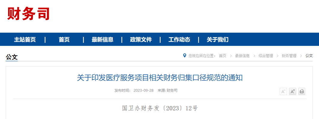關(guān)于印發(fā)醫(yī)療服務(wù)項(xiàng)目相關(guān)財(cái)務(wù)歸集口徑規(guī)范的通知