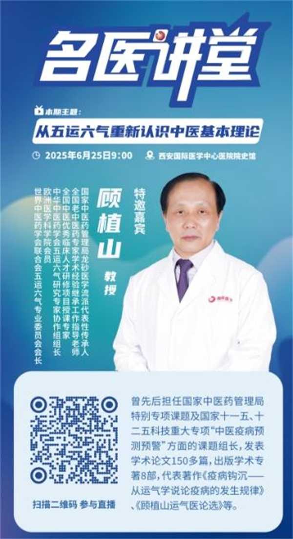 6月25日上午,由西安國際醫(yī)學(xué)中心醫(yī)院主辦的"名醫(yī)講堂"系列學(xué)術(shù)活動在院史館舉行。本次講座邀請到國家中醫(yī)藥管理局龍砂醫(yī)學(xué)流派代表性傳承人顧植山教授,作《從五運六氣重新認(rèn)識中醫(yī)基本理論》的專題報告。西安國際醫(yī)學(xué)中心醫(yī)院尹強院長、中醫(yī)醫(yī)院趙曉平院長、中醫(yī)二科卓鷹主任及科室醫(yī)護(hù)人員、百余名中醫(yī)從業(yè)者及愛好者參會學(xué)習(xí),重新認(rèn)識博大精深的中醫(yī)理論。